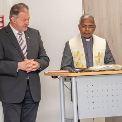 Drei Jahre lang sei das Projekt nach Angabe von Cal Kleemann vom Ingenieurbüro Franz & Vatter aus Ramstein akribisch geplant worden, zumal für die Aufstockung ein statisches Konzept erstellt werden musste. Nach eineinhalb Jahren unfallfreier Bauzeit zollte Kleemann allen beteiligten Firmen ein großes Kompliment für hervorragende Arbeit und lobte den angenehmen Umgang auf der Baustelle. Am Ende der Grußworte übernahmen Pfarrer Bernhard Schäfer und Pater Pious Paul Oroplackal das Wort und stellten das Gebäude unter den Schutz und Segen Gottes. Die Feuerwehrleute zeigten auf beispielhafte Weise, was es heißt, sich selbstlos für den Nächsten einzusetzen.