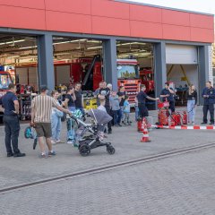 Die Einweihung der Feuerwache wurde mit einem „Blaulichtabend“ verbunden, zu dem die Bevölkerung eingeladen war. Viele Gäste nutzten an dem Abend die Gelegenheit, die Arbeit der Feuerwehr aus nächster Nähe kennenzulernen. Wer wollte, konnte sich selbst einmal am Feuerlöscher oder an der Rettungsschere ausprobieren. Spannende Einblicke gab es in die Atemschutzwerkstatt, die Einsatzzentrale und in die Arbeit der Multikoptereinheit. Und natürlich stand auch die Fahrzeughalle für alle Interessierten offen, was besonders bei den Kindern gut ankam.