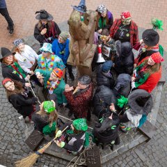 Eine Hexenschar belagert das Rathaus