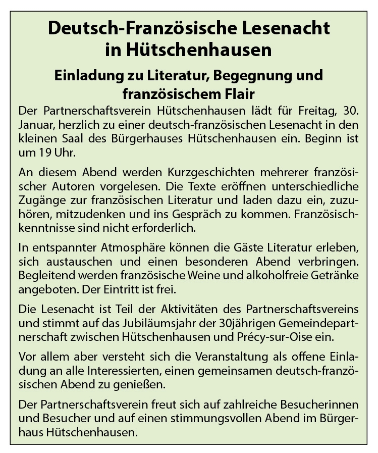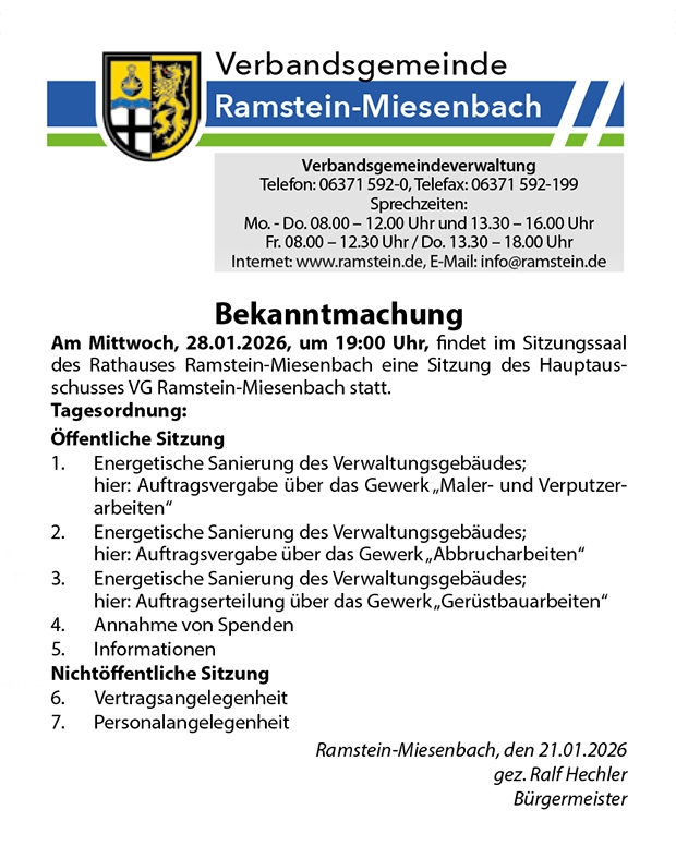 | Di. 10.2. | 19 Uhr | Jahreshauptversammlung der Sportvereinigung Miesenbach im Sportheim Am Kiefernkopf in Miesenbach |